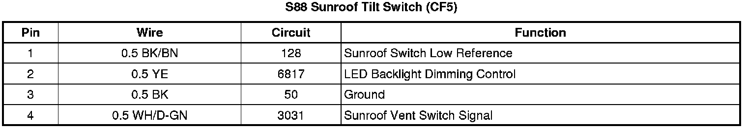 S88 Sunroof Tilt Switch (CF5)