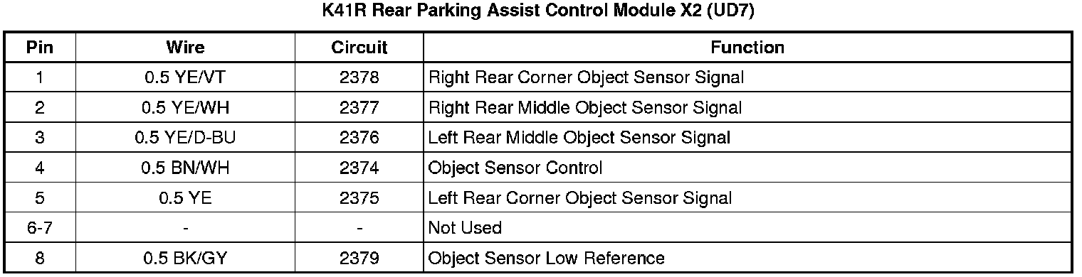 Rear Parking Assist Control Module X2 (UD7)