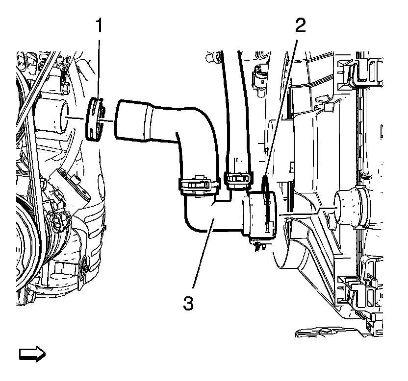 5. Remove the radiator outlet hose assembly (3) from the radiator.