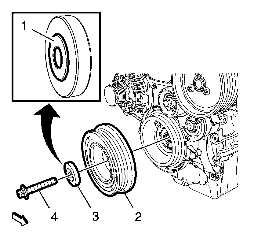 3. Install a NEW crankshaft balancer bolt (4) and tighten the bolt in 3 passes using the EN-45059 - meter