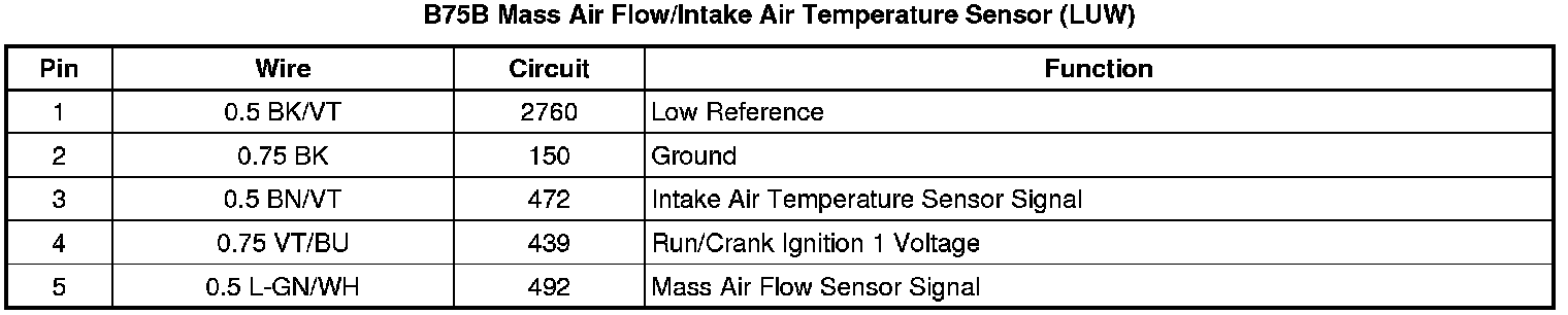 B75B Mass Air Flow/Intake Air Temperature Sensor (LUW)