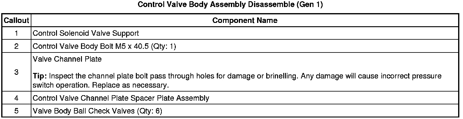 Control Valve Body Assembly Disassemble (Gen 1)