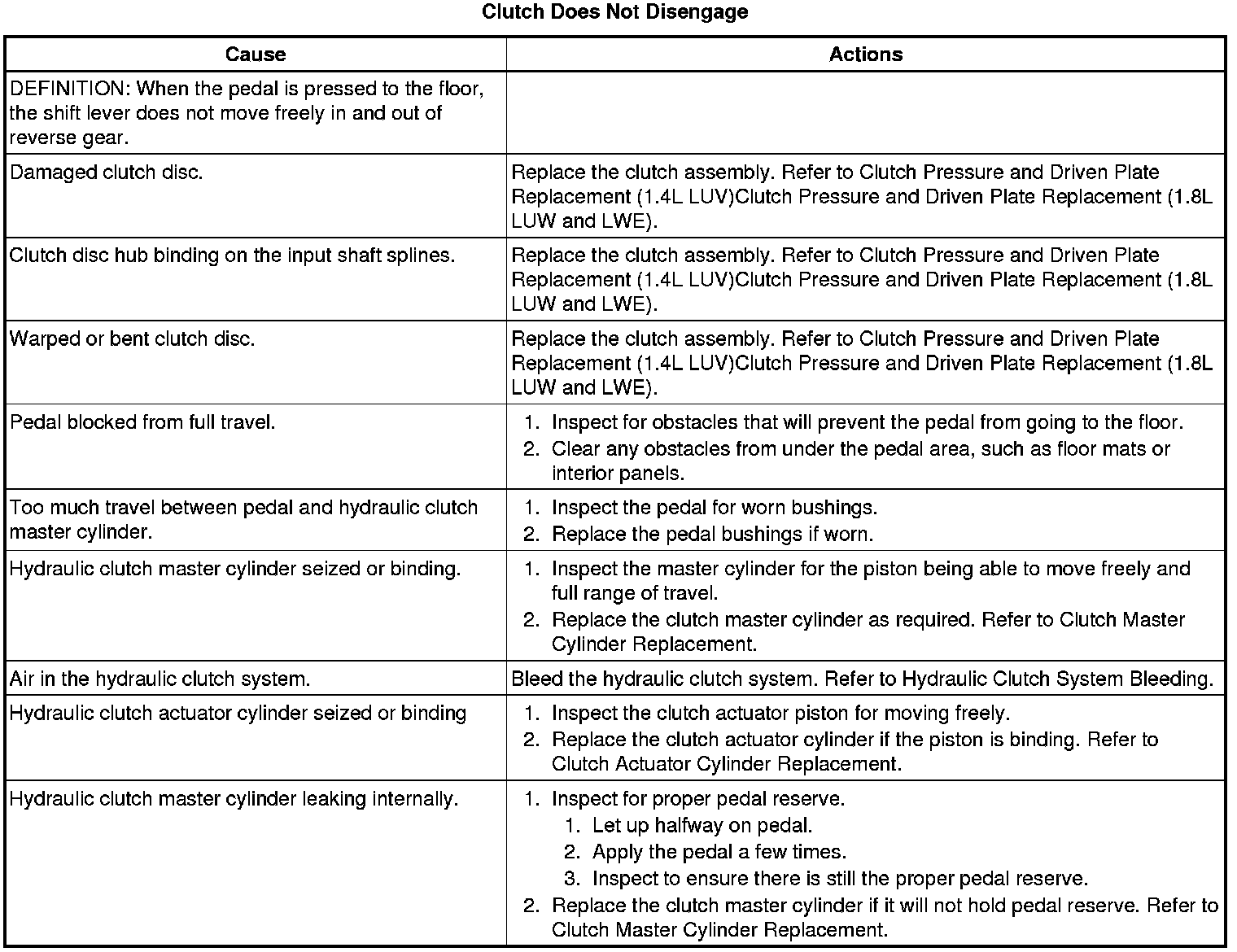 Clutch Does Not Disengage