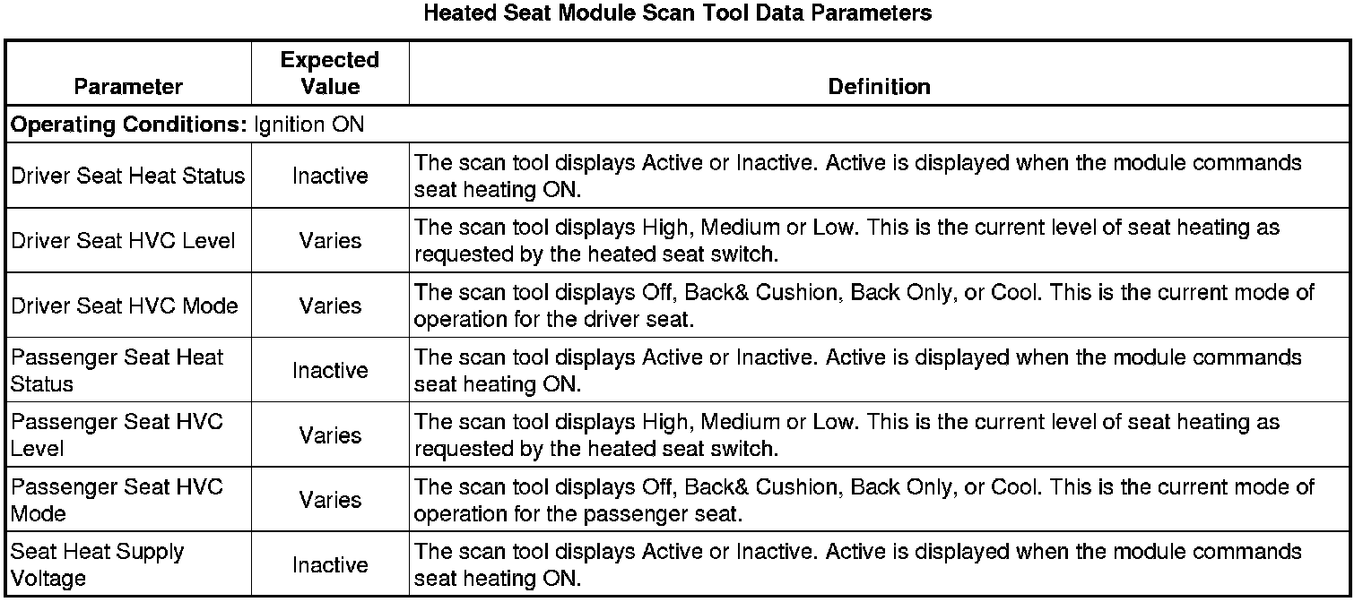 Driver Seat and Passenger Seat Heater Control Module Scan Tool Information