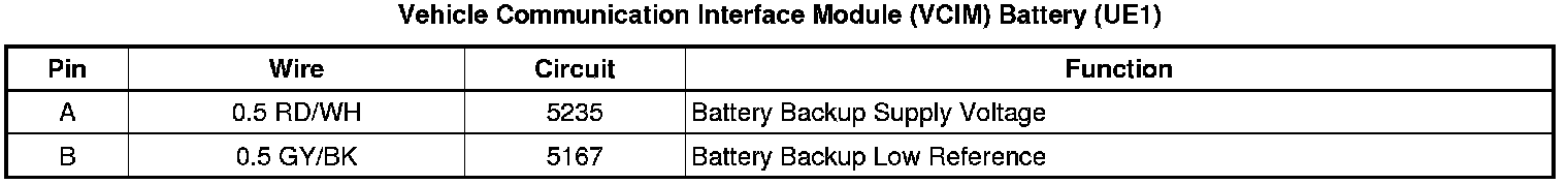 Vehicle Communication Interface Module (VCIM) Battery (UE1)