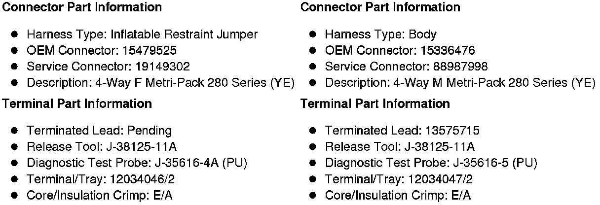 X278 Inflatable Restraint I/P Module Jumper Harness to the Body Harness