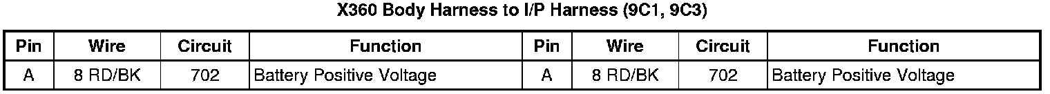 X360 Body Harness to I/P Harness (9C1, 9C3)