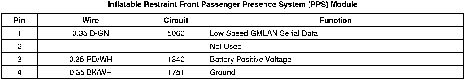 Inflatable Restraint Front Passenger Presence System (PPS) Module
