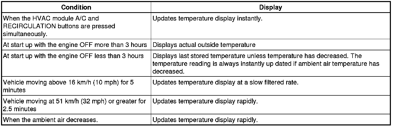 The HVAC module controls the temperature displayed on the DIC and the instant update feature as follows: