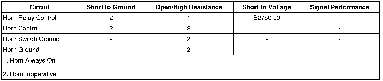 5. If all circuits test normal, test or replace the horn assembly.
