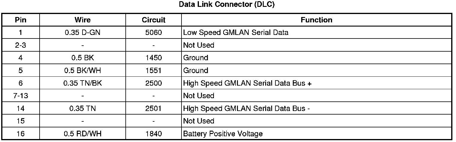 Data Link Connector: Diagrams