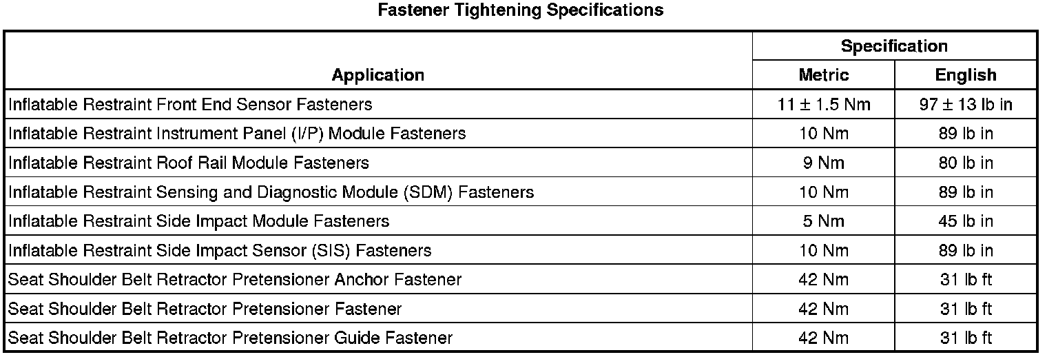 Fastener Tightening Specifications