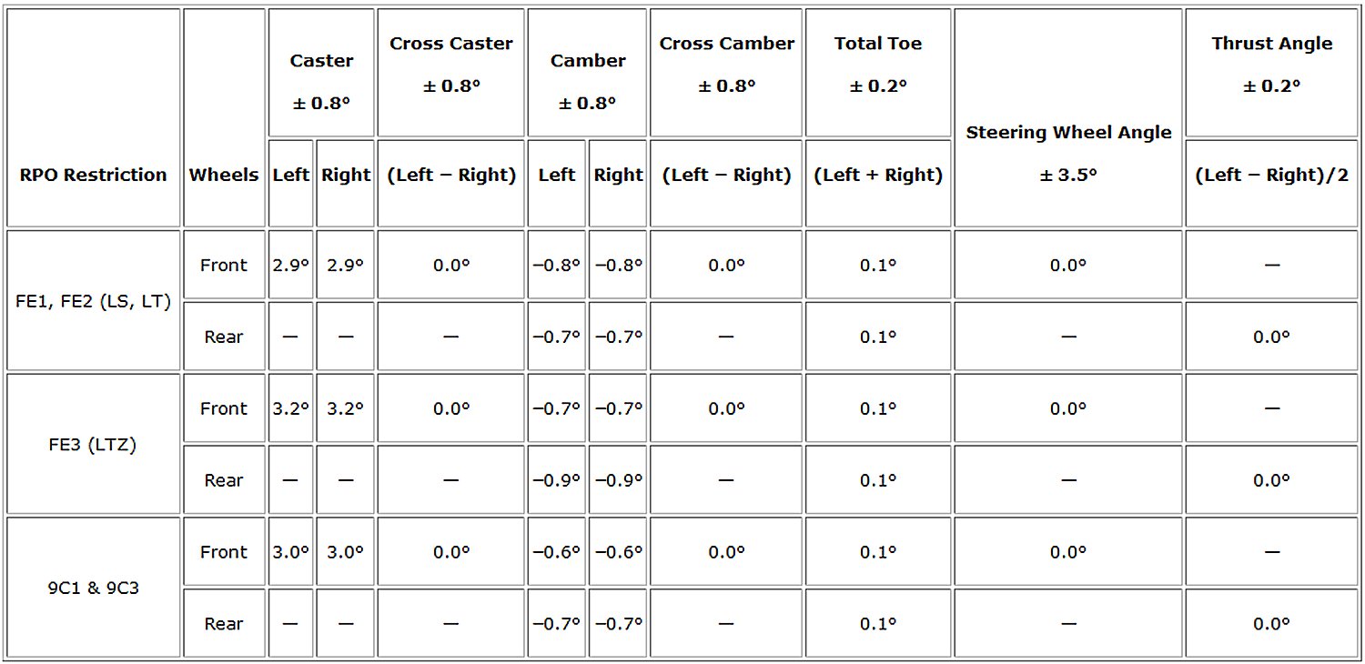 Wheel Alignment Specifications