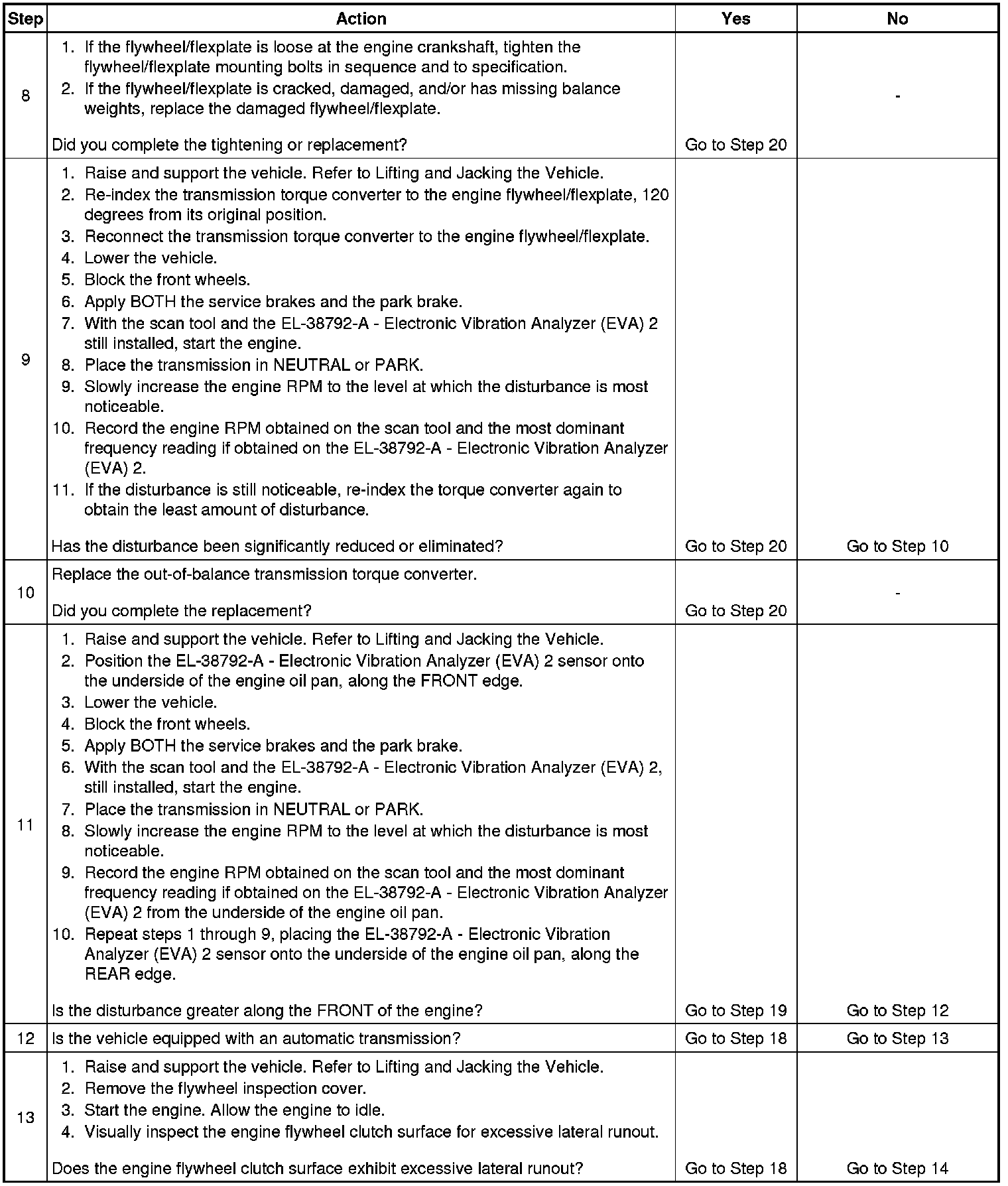 An engine flywheel/flexplate that has excessive lateral runout, when combined with the mass of the transmission torque converter, can produce a disturbance.