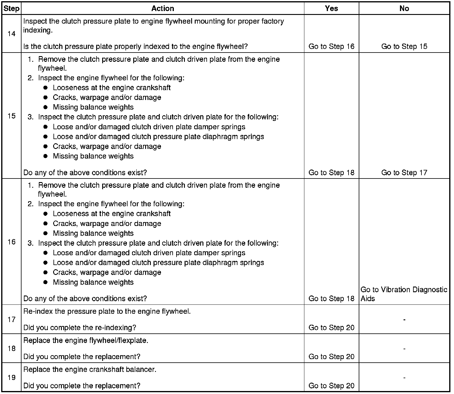 An engine flywheel that is loose at the engine crankshaft or that is cracked, damaged and/or missing balance weights; and/or a clutch pressure plate and clutch driven plate that has loose springs, cracks, warpage, damage and/or missing balance weights - can produce a disturbance when their mass is combined.