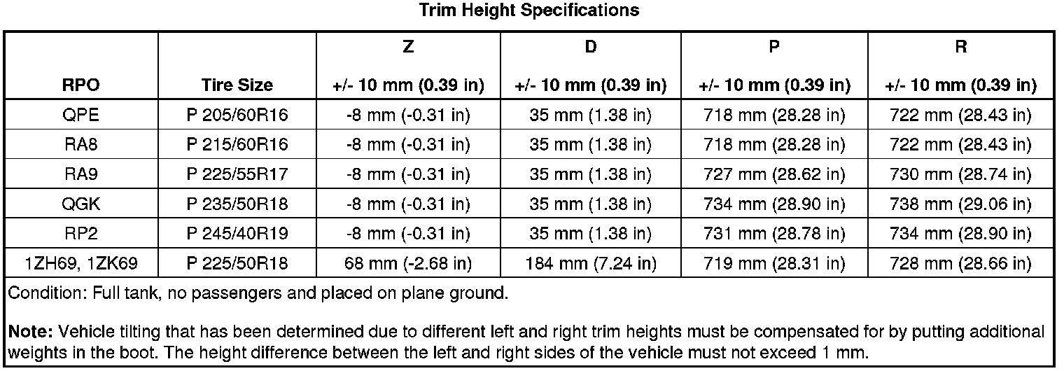 For description see Trim Height Inspection, refer to Trim Height Inspection