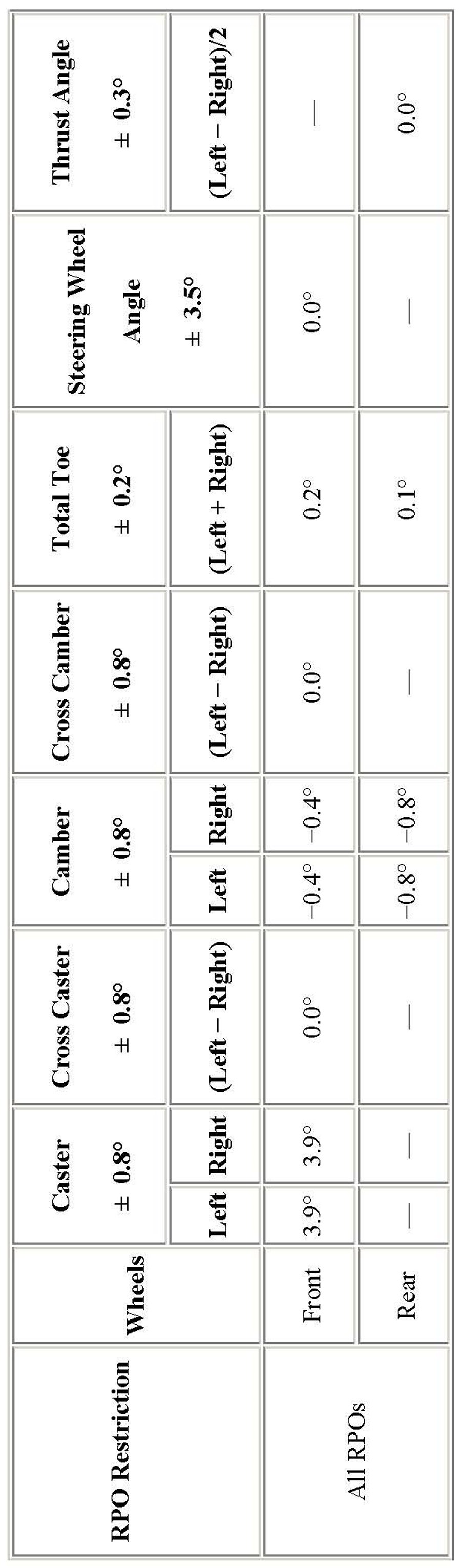 Wheel Alignment Specifications
