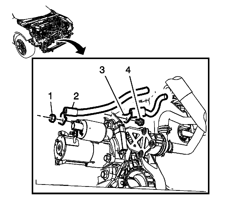 1. Install the negative battery cable ground terminal (3) to the engine block and tighten the fastener (4) to 25 Nm (18 lb ft).