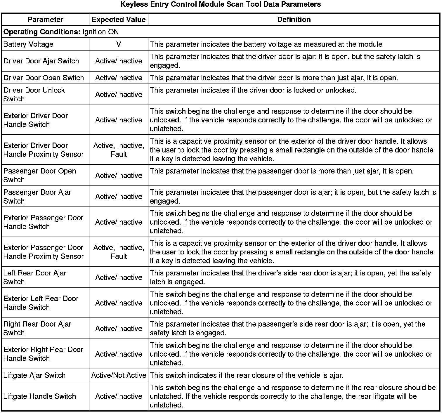 Control Module Scan Tool Information