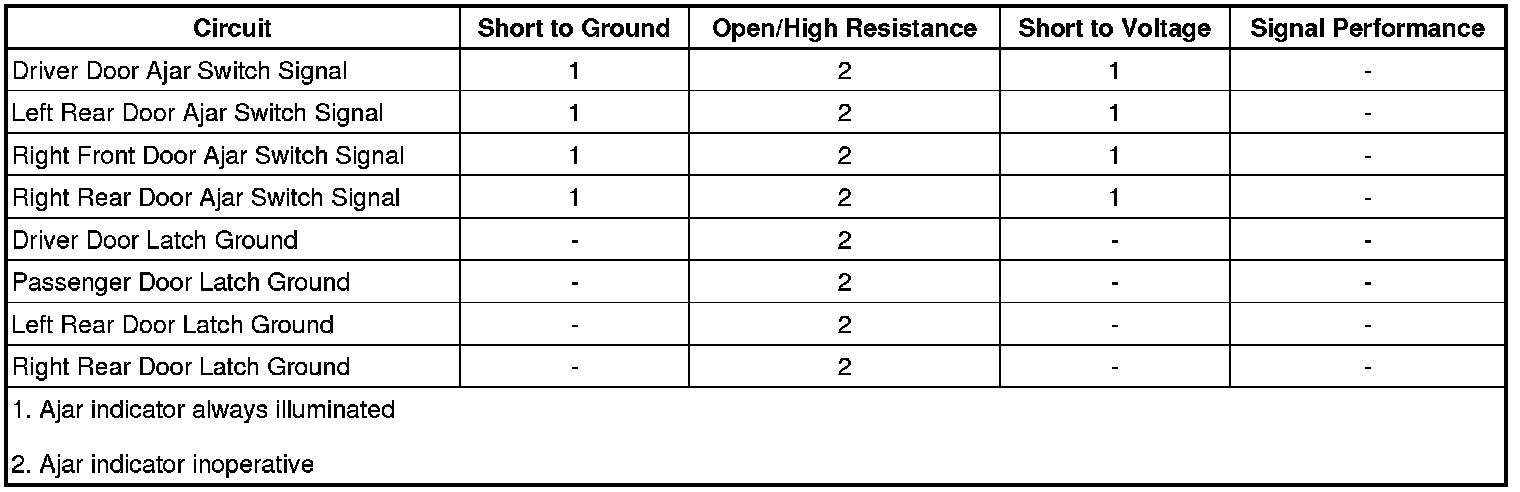 Refer to Circuit/System Testing - Passenger Door Ajar Switch Malfunction.