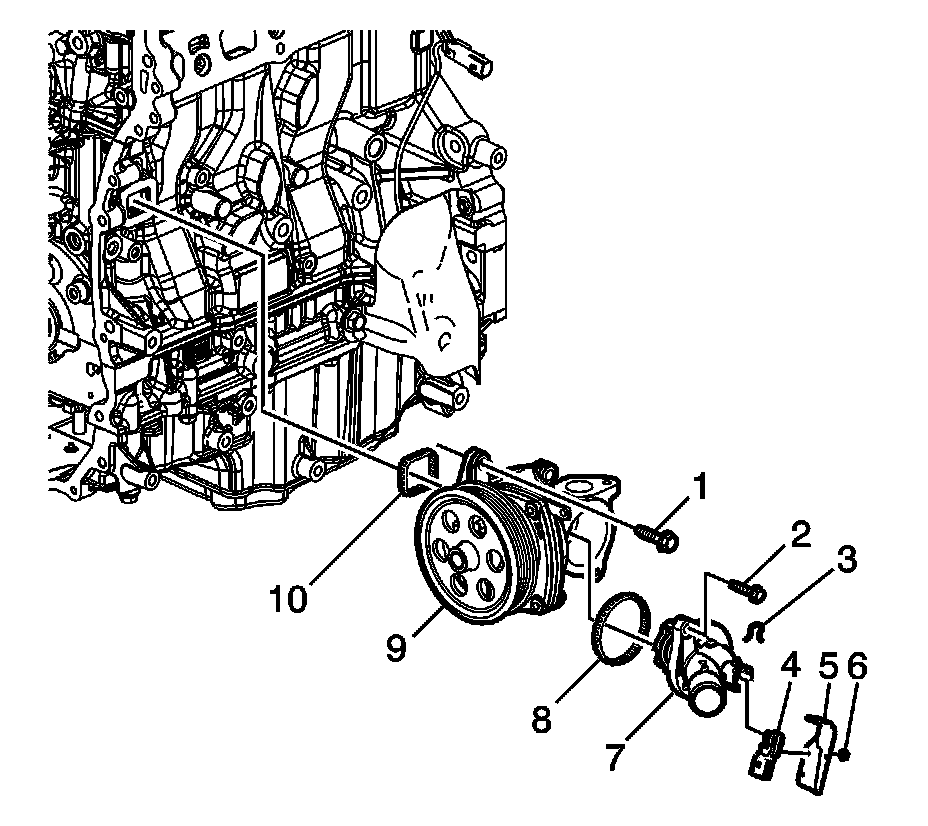 1. Install a NEW water pump gasket (6) and the water pump assembly (5).