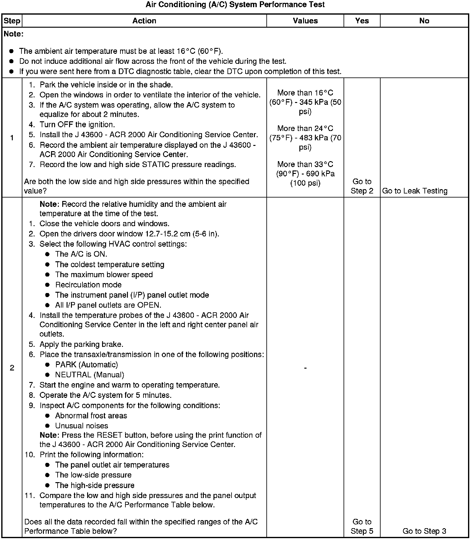 2. This step measures the performance of the A/C system.