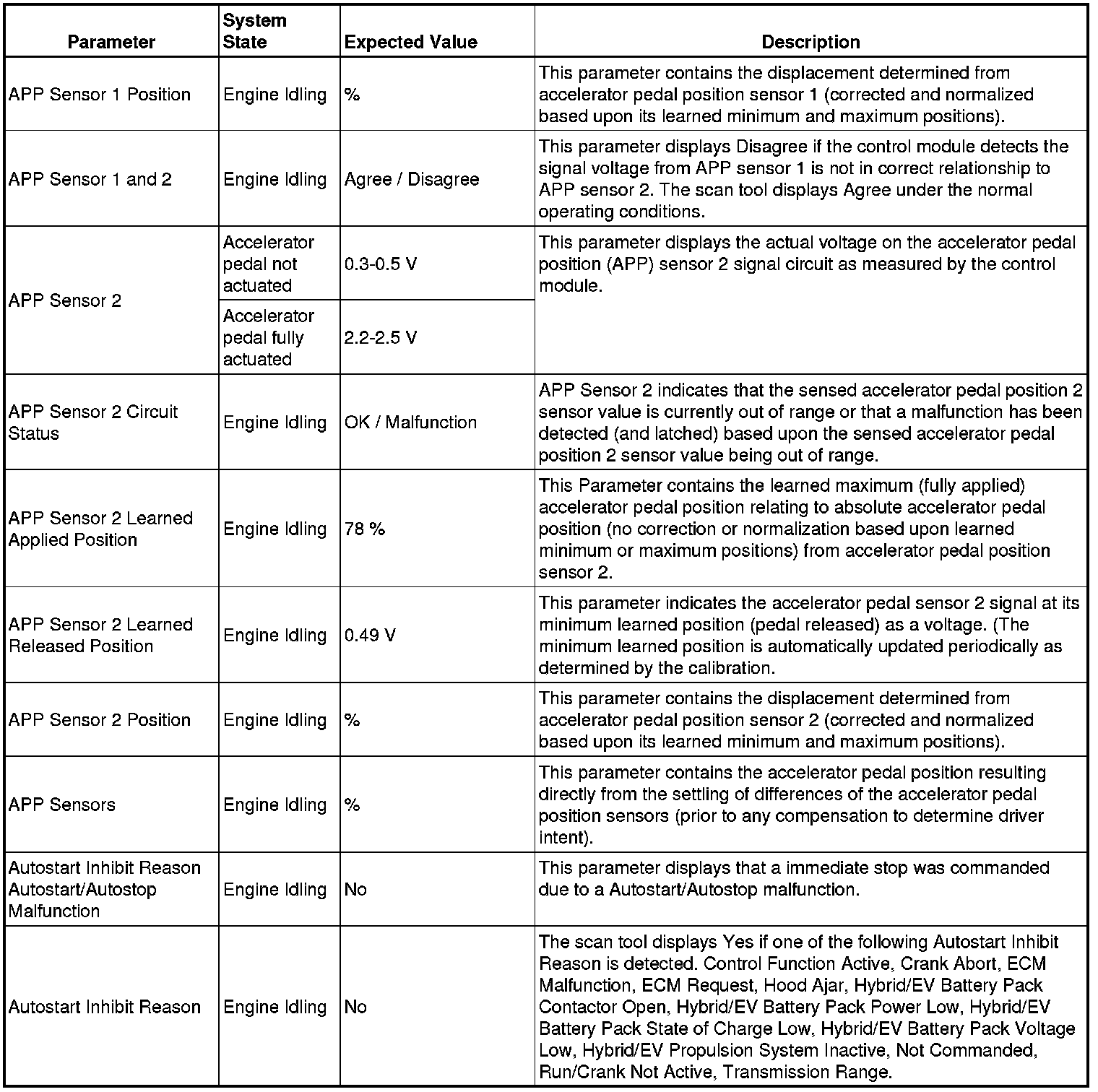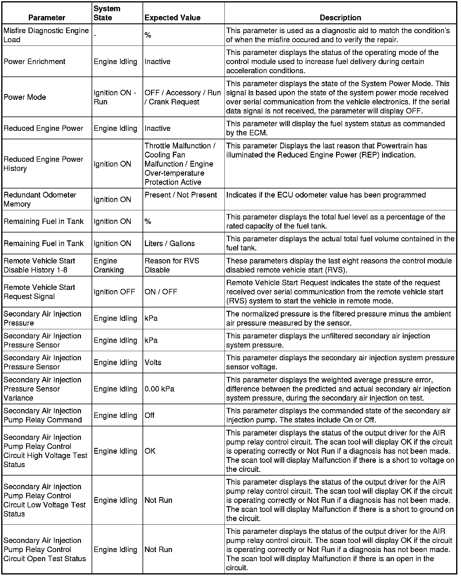 The Engine Control Module Scan Tool Data List contains all engine-related parameters that are available on the scan tool. The list is arranged in alphabetical order. A given parameter may appear in any one of the data lists, and in some cases may appear more than once, or in more than one data list in order to group certain related parameters together.