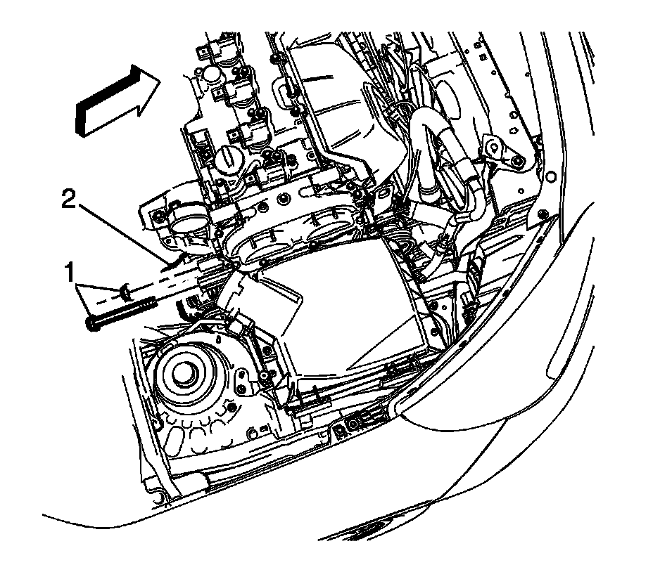 2. Install the generator lower mounting fastener (2) and tighten to 22 Nm (16 lb ft).
