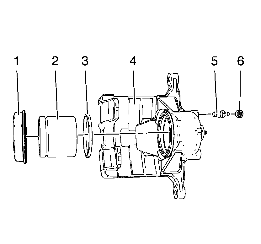 4. Using a small wooden or plastic tool, remove the piston seal (3) from the caliper bore. Discard the piston seal.