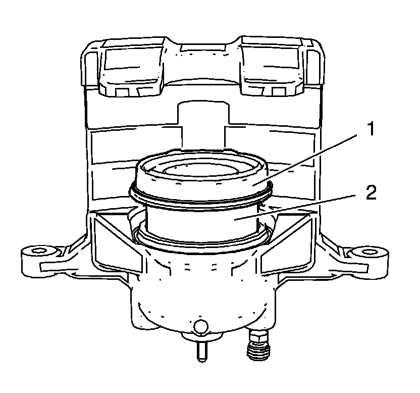 4. Install the new piston dust boot seal (1) over the caliper piston (2).