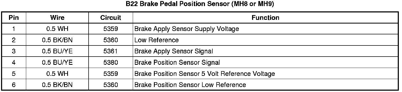B22 Brake Pedal Position Sensor (MH8 or MH9)