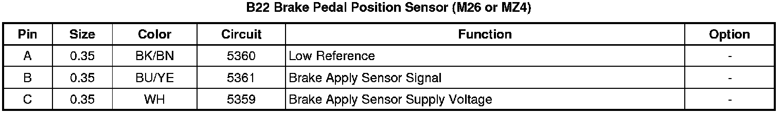 B22 Brake Pedal Position Sensor (M26 or MZ4)