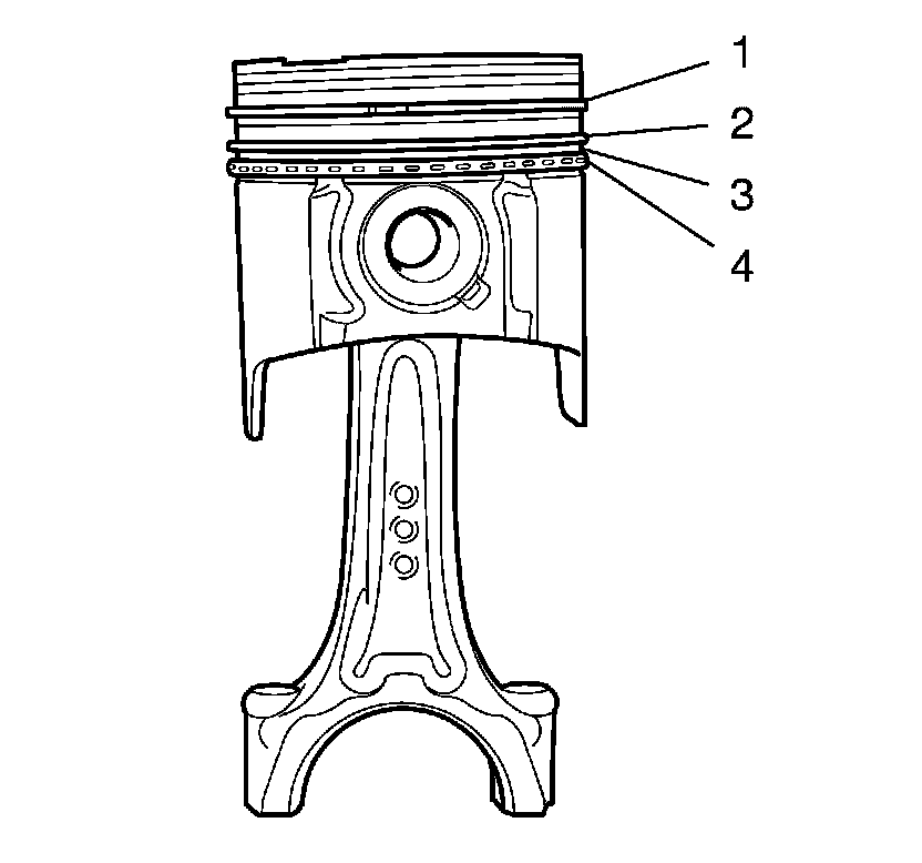 1. Remove the piston rings. Use piston ring pliers (1)