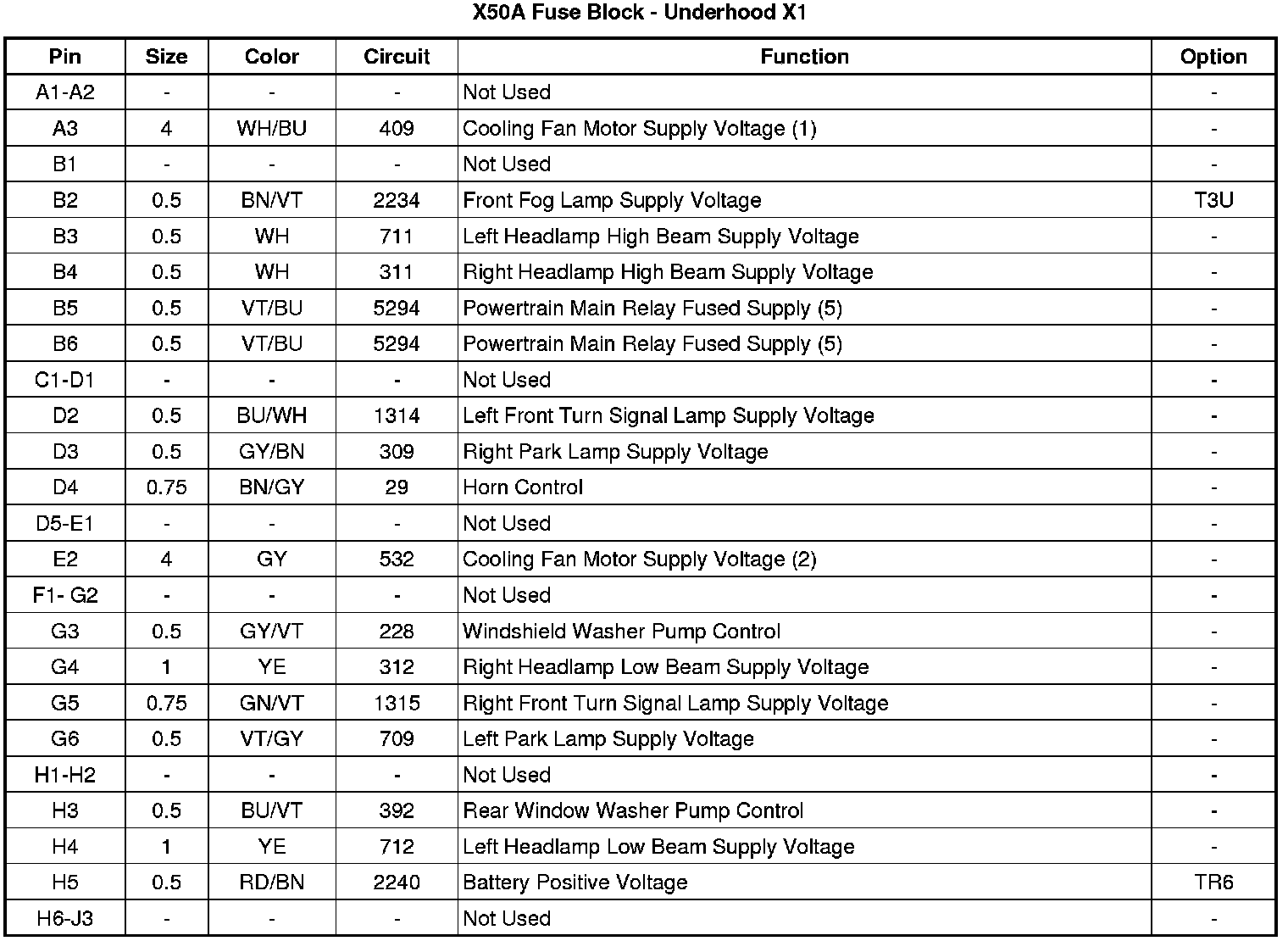 X50A Fuse Block - Underhood X1