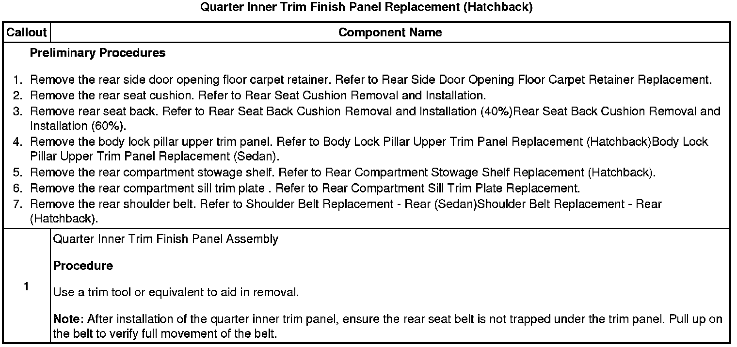 Quarter Inner Trim Finish Panel Replacement (Hatchback)