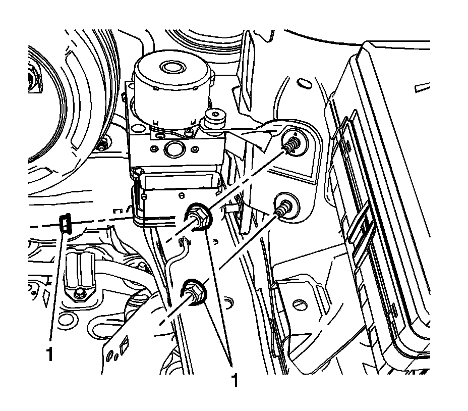 5. Install the EBCM/BPMV and bracket assembly nuts (1) and tighten to 17 Nm (12 lb ft).