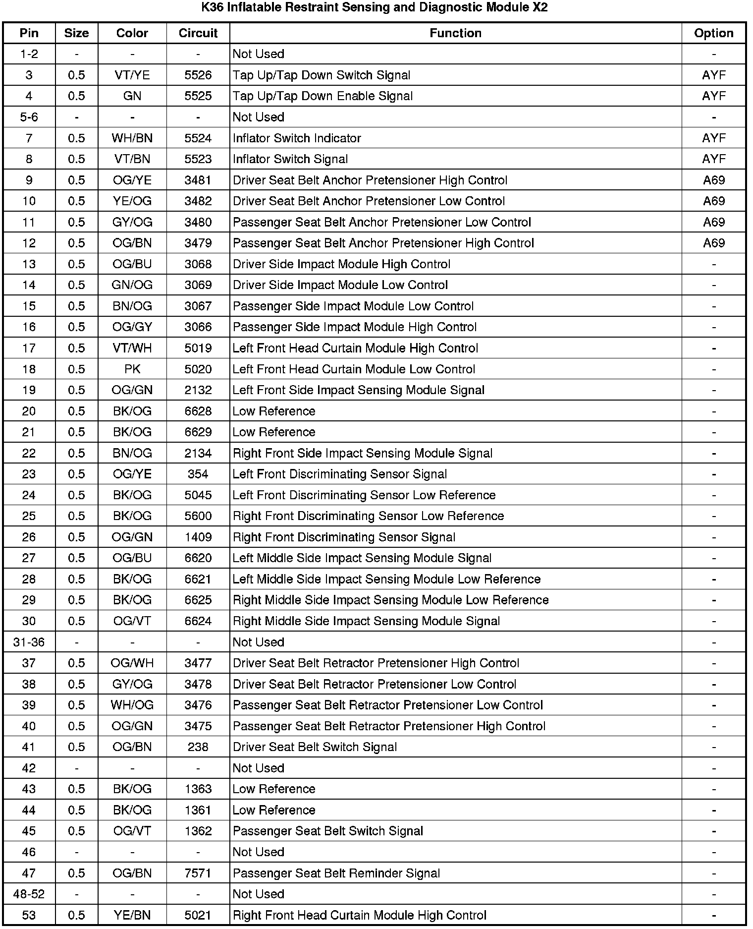 K36 Inflatable Restraint Sensing and Diagnostic Module X2