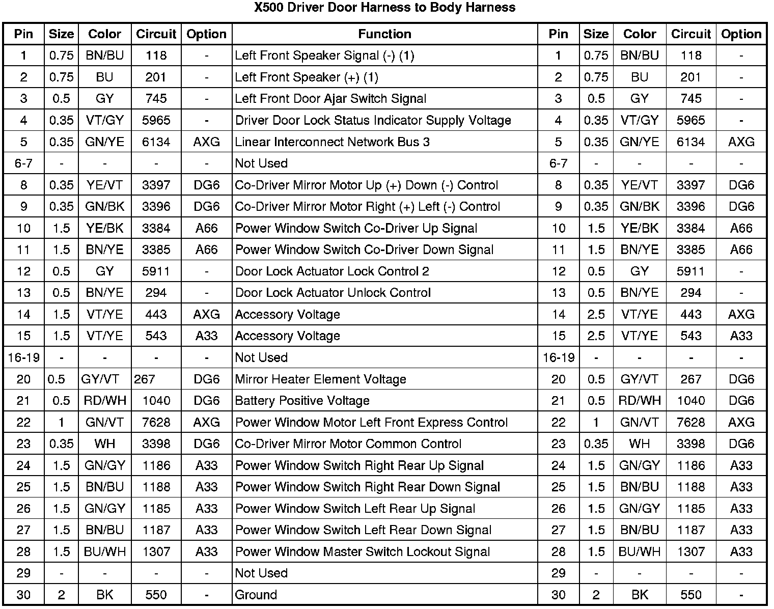 X500 Driver Door Harness to Body Harness