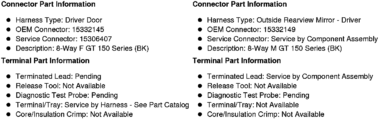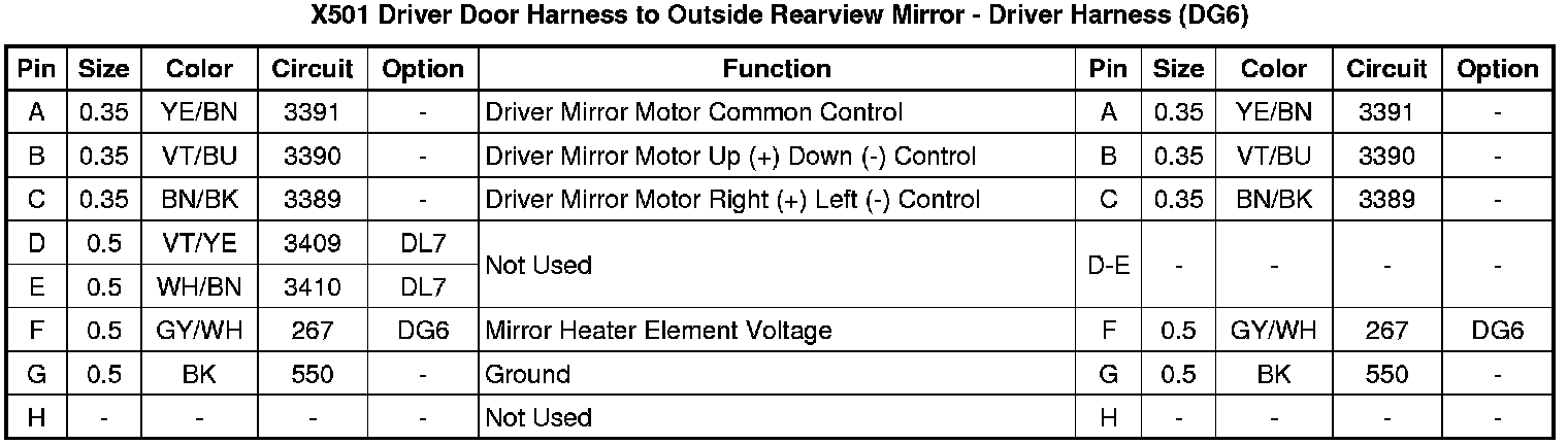 X501 Driver Door Harness to Outside Rearview Mirror - Driver Harness (DG6)