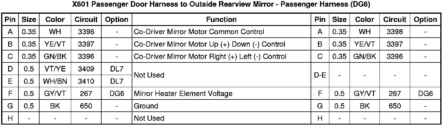 X601 Passenger Door Harness to Outside Rearview Mirror - Passenger Harness (DG6)