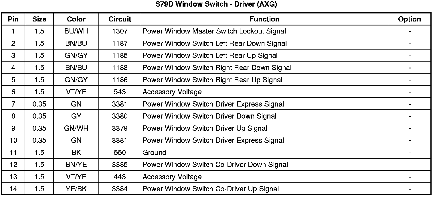 S79D Window Switch - Driver (AXG)