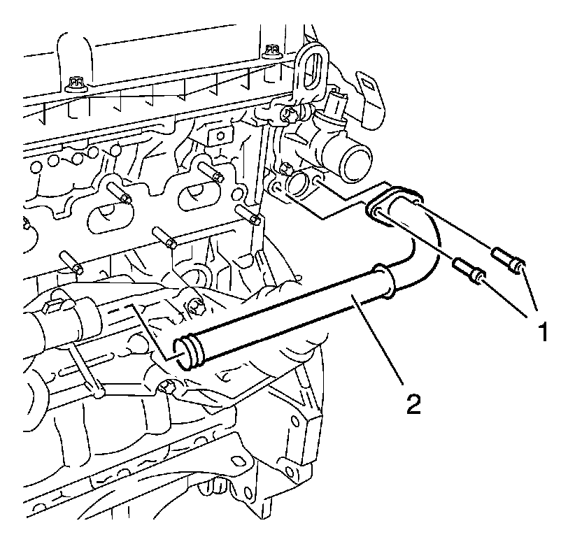 7. Remove the radiator inlet hose (2) from the engine coolant thermostat housing.
