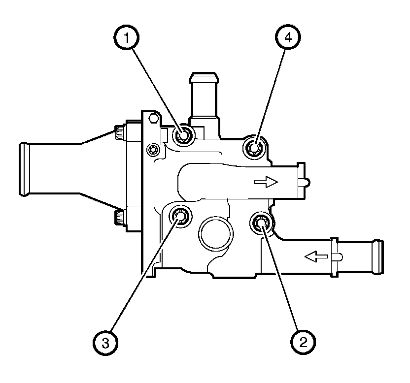 4. Tighten the 4 engine coolant thermostat housing bolts to 8 Nm (71 lb in) in sequence (1-2-3-4).