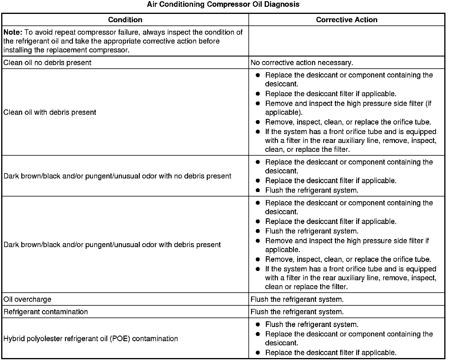 Air Conditioning Compressor Oil Diagnosis