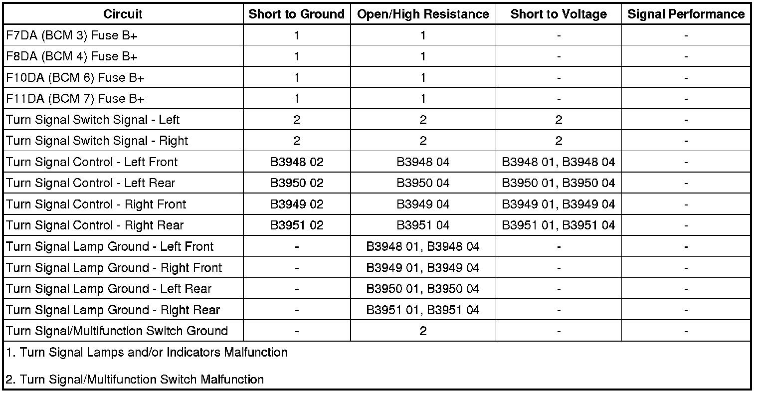 Turn Signal Lamps Malfunction