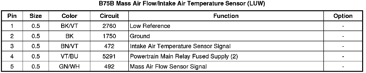 B75B Mass Air Flow/Intake Air Temperature Sensor (LUW)