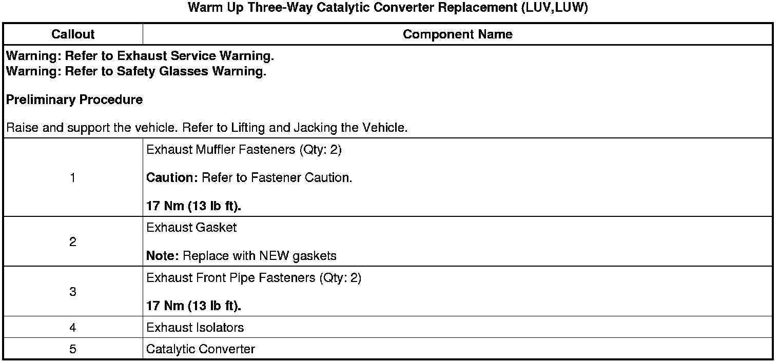 Warm Up Three-Way Catalytic Converter Replacement (LUV,LUW)