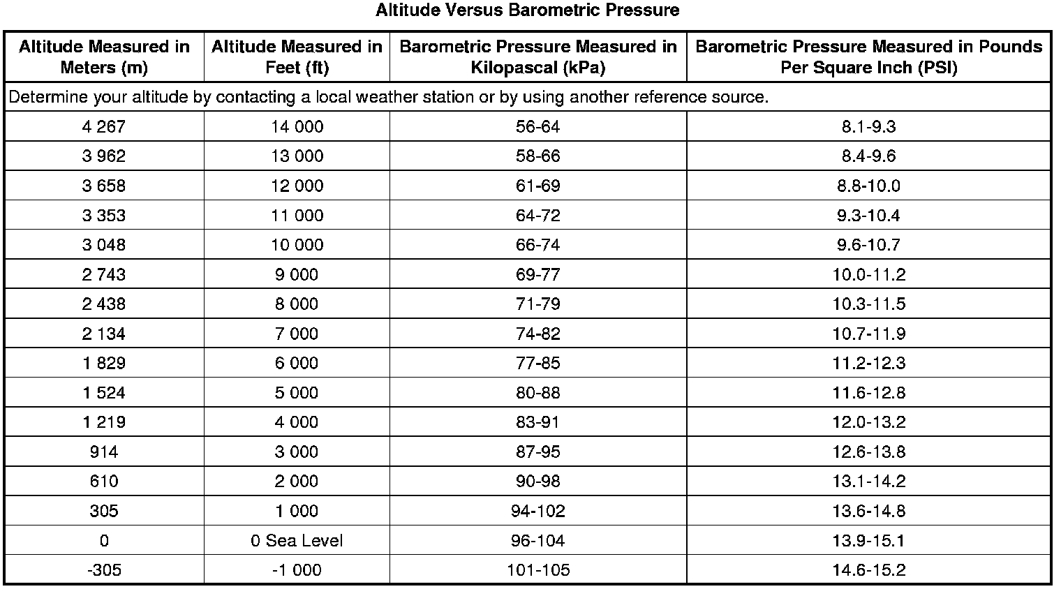 Altitude Versus Barometric Pressure
