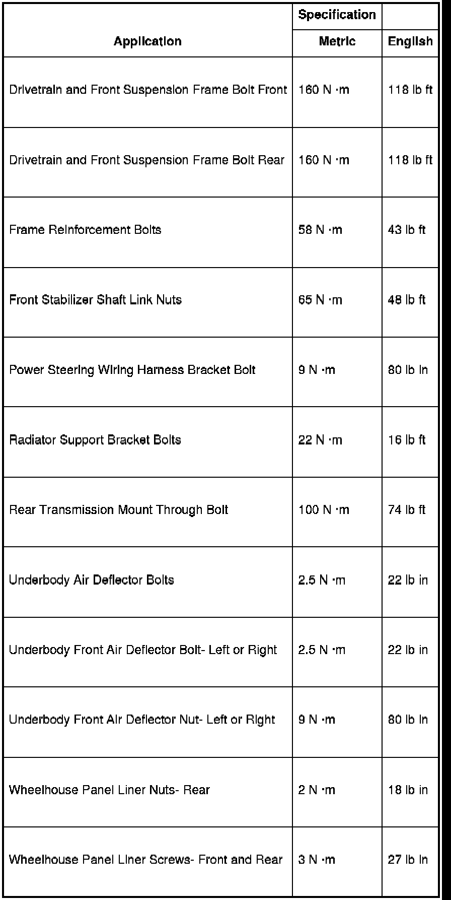 Fastener Tightening Specifications