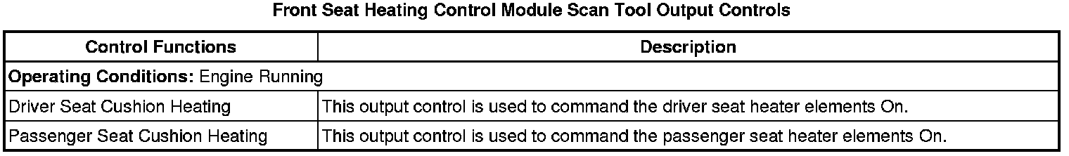 Driver Seat and Passenger Seat Heater Control Module Scan Tool Information